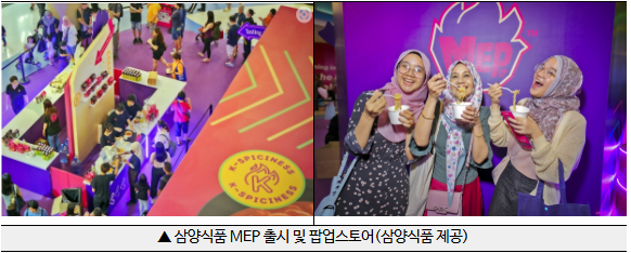 ❍ 최근 삼양식품은 말레이시아에서 매운맛 문화를 담은 글로벌 브랜드 MEP(맵)을 론칭하여 단순한 매운맛을 넘어 해방감과 짜릿함을