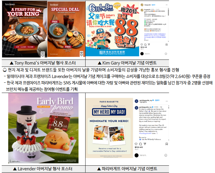 ❍ 말레이시아 외식업계는 아버지의 날을 맞이하여 각종 할인 및 기간 한정 이벤트를 기획
