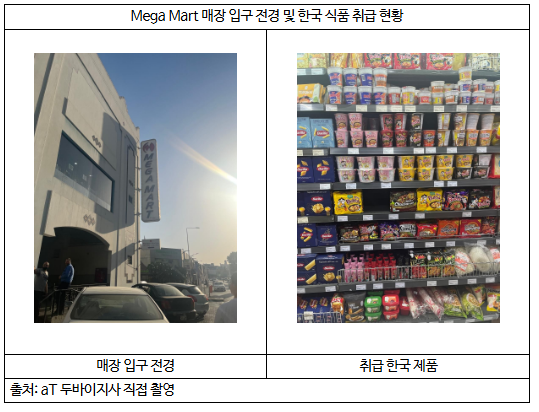 두 마트 모두 깔끔하게 정돈된 매장 환경을 갖추고 있으며, 다양한 한국 식료품과 생활용품을 취급해 현지 교민과 한국 식품에 관심 있는 현지 고객들의 쇼핑 수요를 충족하고 있다.