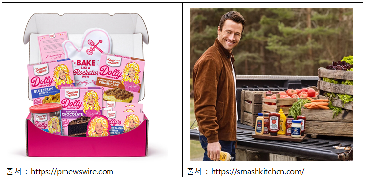 ⦁ 돌리 파튼 냉동식 시리즈는 월마트 등 대형 리테일 채널을 통해 미국 전역에 판매 중이며, SNS 상에서도 출시 전부터 높은 기대감을 모았다. 특히 돌리 파튼의 음악 팬이 아닌 일반 소비자들도 ‘믿고 먹는 브랜드’로 인식할 수 있는 진입장벽 낮은 포지셔닝이 강점으로 꼽힌다. 스타의 영향력을 감성적 공감과 실제 식탁 경험으로 확장하여 스타 마케팅의 방향성에 중요한 이정표가 된 것으로 평가받고 있다.