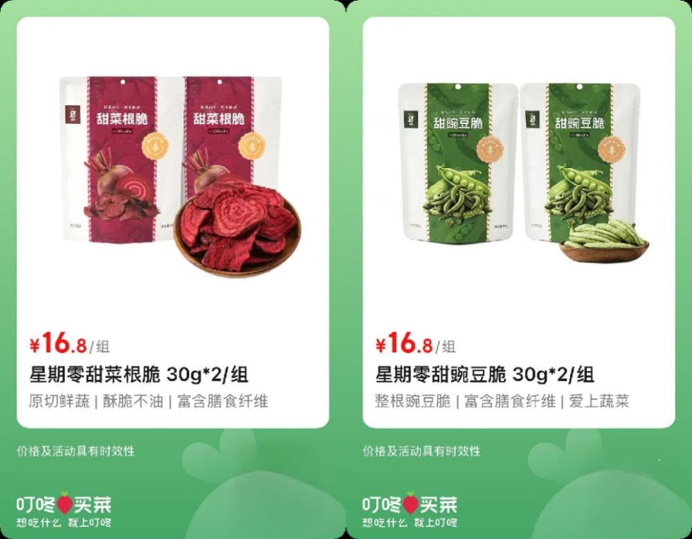 중국에서 점점 더 많은 소비자들이 제품 성분과 기능에 주목하고 이해하게 되면서, 간식에 대한 소비자 요구도 단순히 식욕 채우기를 넘어 신선한 원재료, 깔끔한 성분표, 우수한 영양성 등 세분화된 기준으로 확대되고 있다. 최근 식물성 식품 브랜드 ‘싱치링(星期零)’의 비트칩과 완두콩칩이 즉시 배송 플랫폼인 ‘딩동마이차이(叮咚买菜)’에 정식 출시되며, 건강 간식의 소비 시나리오를 더욱 풍부하게 하는 동시에 싱치링(星期零)의 즉시 소매 채널 확장을 가속화했다.
