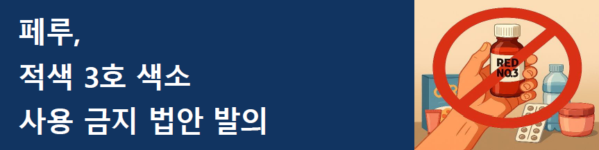 2025년 6월 17일, 페루 의회에서 자유당(Perú Libre) 소속 마리아 안토니에타 아게로 구티에레스 (MARÍA ANTONIETA AGÜERO GUTIÉRREZ)의원은 식품, 음료, 의약품, 화장품, 포장 제품 등 인간의 소비 또는 사용 제품에 포함된 ‘적색 3호 색소(Eritrosina, E127, FD&C Red No.3)’의 사용을 금지하는 법안을 발의함. 이 법안은 적색 3호 색소(Eritrosina, E127, FD&C Red No.3)가 암 유발 가능성, 어린이 행동 문제, 갑상선 이상 등 건강에 해를 줄 수 있다는 국제적 연구 결과와 미국 FDA 등의 경고에 근거해 국민 건강을 보호하고 암 예방을 강화하기 위한 목적으로 마련됨