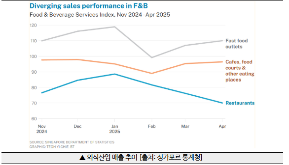 ❍ 싱가포르 외식업계가 계절 요인을 넘어선 전반적인 매출 하락세를 겪고 있음