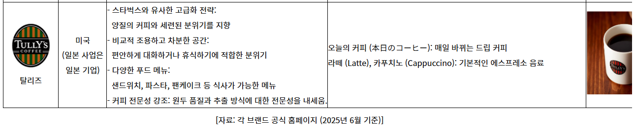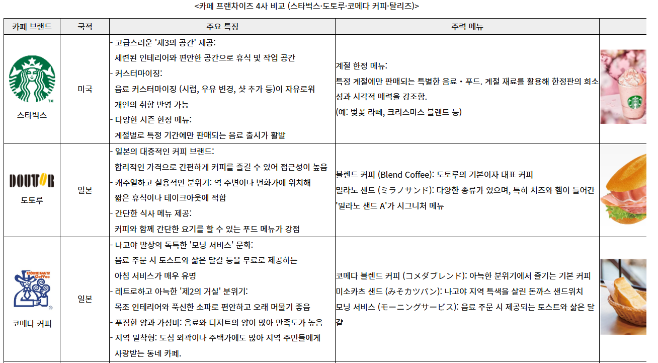 이들 프랜차이즈 브랜드의 특징을 살펴보면, 일본 카페 시장의 전반적인 소비 패턴과 운영 전략이 드러난다.