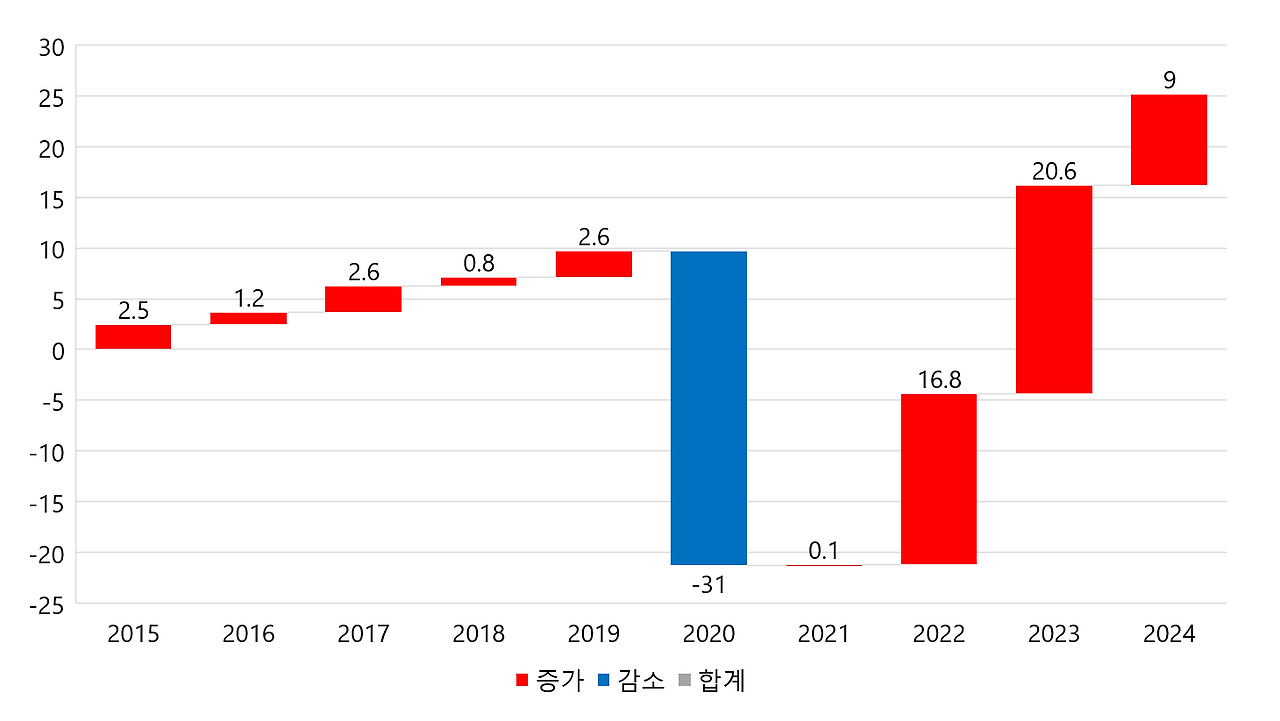 <일본 카페 산업(喫茶)의 연도별 매출 증감률 추이>
