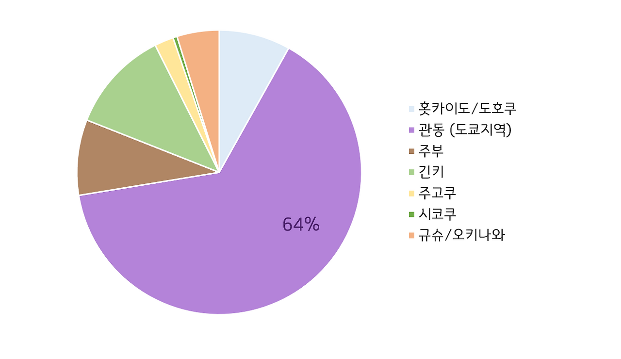 일본 프랜차이즈 카페의 지역별 분포 현황