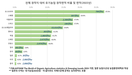 전 세계적으로 지난 15년간 유기농 경작지는 약 3배로 증가해 2022년 약 9천640만 헥타르에 달하며, 전 세계 전체 경작지의 2%를 차지했다. 유기농업 시장이 세계적으로 성장하는 가운데, 일본은 후발주자로서 유기농업을 국가 전략으로 육성하며 추격에 나섰다.