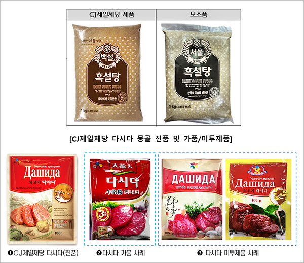 CJ제일제당의 대표 브랜드 ‘백설 흑설탕’은 베트남 시장에서 ‘서울 흑설탕’이라는 이름의 모방품으로 유통됐다. 해당 제품은 브랜드명만 교묘하게 바꿨을 뿐, 수십 년간 소비자에게 각인된 고유의 심벌과 디자인, 서체까지 그대로 사용해 소비자가 원제품으로 오인하게 만들었다. 몽골 조미료 시장 1위인 CJ제일제당의 ‘다시다’ 역시 정교하게 위조된 제품으로 인해 지속적인 행정단속과 법적 대응에 나서고 있는 실정이다.