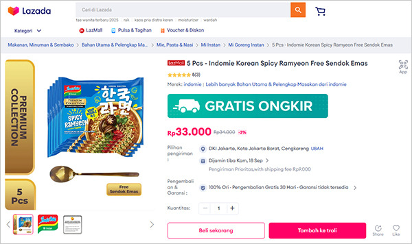 특히 인도네시아의 ‘인도미(Indomie)’는 ‘불닭맛 매운 라면’의 상징인 검은색과 붉은색 패키지를 노골적으로 모방한 ‘한국식 매운 라면’을 출시했다. 더 나아가 동남아 대형 온라인 쇼핑몰에서 이 제품을 ‘한국 라면(Korean Ramen)’으로 분류해 판매하며 검색 트래픽과 소비자 선택을 가로채고 있다. 이는 온라인 시장의 알고리즘까지 파고드는 ‘디지털 지식재산권 침해’로 진화하고 있음을 보여준다.