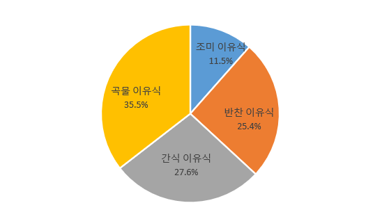 중국 영유아 이유식은 △쌀과자 등 곡물을 원료로 가공한 곡물 이유식과△영유아 간장, 호두 기름과 같은 조미 이유식, △미역, 돼지고기 분말 등을 포함한 반찬 이유식, 그리고 △치즈스틱, 과일퓌레와 같은 간식 이유식 등 크게 4가지 종류로 나뉜다. 2024년 중국 영유아 이유식 종류별 시장 점유율을 보면 곡물 이유식이 시장 점유율 35.5%로 가장 많은 비중을 차지하고 있다. 곡물 이유식이란 밀, 쌀, 보리, 귀리, 호밀, 옥수수 등 곡물 비중이 25% 이상 되는 주원료에 적당한 영양강화제 혹은 기타 보조 재료를 첨가한 식품이다. 곡물 이유식은 주로 6개월 이상의 영유아가 섭취하기에 적합한 보조 식품으로 영유아의 에너지, 단백질, 비타민 등 다양한 영양소 섭취를 돕는다.