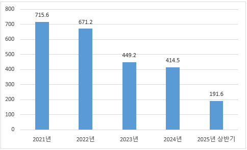 한편, 중국 백주 생산량은 2016년 이후 매년 감소세를 이어오고 있다. 중국 국가통계국 자료에 따르면, 2016년 백주 생산량은 1358만4000kL로 역대 최고치를 기록한 이후 지속적으로 줄어들어 2024년에는 414만5000kL에 그쳤다. 생산 감소세가 이어지면서 단기적으로는 산업 구조조정에 따른 기업 경영 부담 증가와 경쟁 심화가 불가피하지만, 장기적으로는 업계의 체질 개선과 건전한 성장 기반 마련에 긍정적인 영향을 미칠 것으로 전망된다.