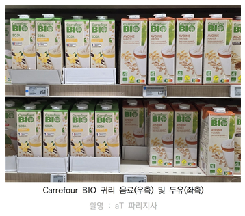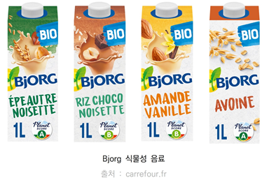 프랑스 식물성 음료 시장을 주도하고 있는 브랜드는 Bjorg이다. Bjorg는 1988년 프랑스 제2의 도시 리옹에서 시작하였으며, 현재 전 제품의 1/3 이상을 프랑스에서 생산하고 있다. 지난해에는 매출액 1억 8,000만 유로(약 2,970억 원)를 기록해 유기농·식물성 식품 기업 Ecotone의 매출 25%를 차지하는 주요 브랜드로 자리매김하고 있다. 프랑스 유통 전문지 LSA에 따르면 BjORG의 시장 점유율은 59.5%로, 이 외에 유기농 비스킷(46.1%), 유기농 아침용 시리얼(49.2%) 시장에서도 절반에 달하는 시장 점유율을 보이고 있다.