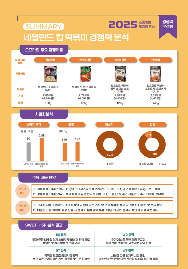 유럽 , 아프리카등 2025년 네덜란드 컵떡볶이(경쟁력분석형) 곡산 2025. 11. 20. 07:44 2025년 네덜란드 컵떡볶이(경쟁력분석형) [202510-33] 네덜란드 컵 떡볶이 보고서 (경쟁력분석형).pdf 3.09MB