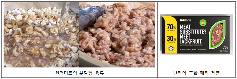 말레이시아의 푸드테크 스타트업은 현지 식품업계에서 식물성 식품의 대중화를 이끌기 위한 핵심 전략으로 실용성, 비용 절감을 채택해 다양한 품목을 개발하고 있다. 굿모닝 글로벌(Good morning Global)의 원더미트(Wondermeat)는 말레이시아 최초의 분말형 식물성 육류제품으로, 대두와 완두콩 단백질로 만들어졌다. 냉동 보관이 필요 없고 최대 2년까지 상온 유통이 가능하다는 점이 강점이다. 물과 오일만 섞으면 30분 안에 조리 가능한 대체육이 완성되며, 한 팩 RM5.50의 낮은 가격과 높은 편의성으로 저비용·유통 효율성· 접근성을 모두 확보했다.