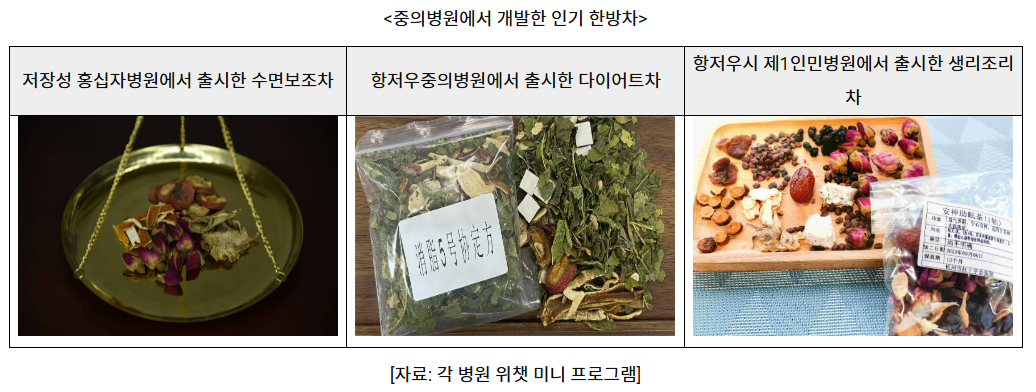 건강음료·스낵 시장에서는 ‘0설탕, 0지방’을 넘어 한방 원료를 현대적으로 재해석한 제품이 인기를 얻고 있다. 인삼, 구기자, 대추 등 전통적인 한방 재료를 현대적인 스낵이나 음료에 접목한 '궈차오 양생(国潮养生)' 제품이 인기를 끌고 있다. 이는 건강과 전통문화를 동시에 소비하려는 젊은 층의 니즈를 정확히 파고든 결과다. 특히 작년부터 중의병원에서 개발한 보양차·다이어트차·모발케어 음료 등이 젊은층 사이에서 ‘힐링 드링크’로 자리 잡고 있다. 또한 스마트 진단기로 체질을 분석해 맞춤 차를 제공하는 ‘작당우방(鹊堂羽坊)’ 서비스도 인기를 끌고 있다.