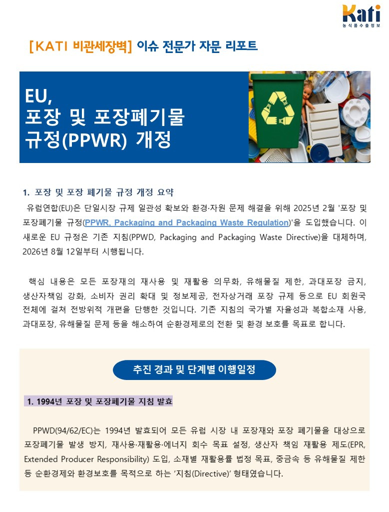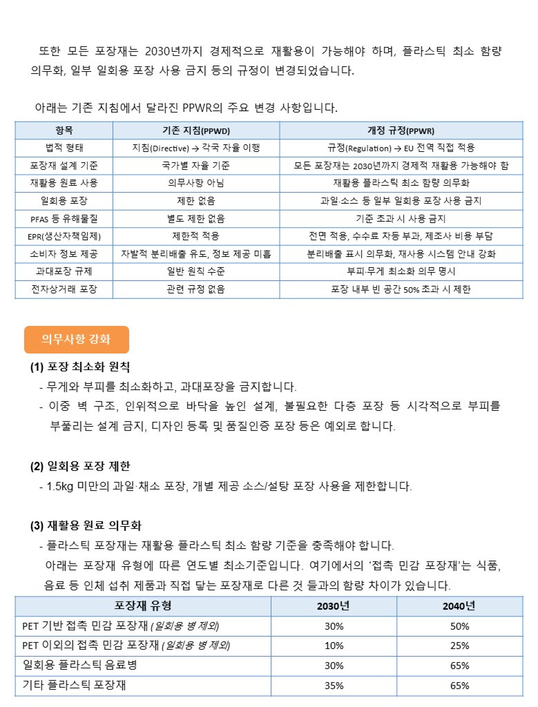 [전문가자문] EU, 포장 및 포장 폐기물 규정(PPWR) 개정