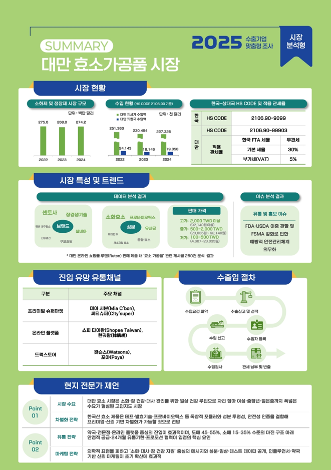 중국 2025년 대만 효소가공품(시장분석형) 곡산 2025. 12. 5. 07:37 2025년 대만 효소가공품(시장분석형) [202511-16] 대만 효소가공품 보고서 (시장분석형).pdf 2.43MB