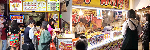 가장 대표적인 사례는 한국식 치즈 핫도그다. 일본 도쿄 신오쿠보, 시부야, 오사카 난바 등 젊은 소비자 밀집 지역에는 한국식 치즈 핫도그 전문점이 잇달아 문을 열었고, 주말이면 가게 앞에 줄이 길게 늘어서 있는 모습을 쉽게 볼 수 있다. 바삭한 튀김옷 속에 들어 있는 모차렐라 치즈가 한없이 늘어나는 광경은 소비자에게 강렬한 시각적 경험을 선사한다.
