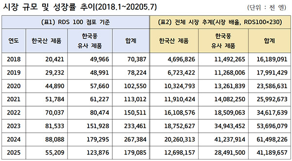 2018~2024년 한국산 4배-유사 제품 3배 성장…1000억 엔