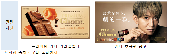 롯데(LOTTE)의 2025년 초콜릿 판매전략은 시장 트렌드를 반영한 상품군을 발매하는 것이다. 근처에서 쉽게 구매할 수 있으면서 초콜릿 전문점의 퀄리티를 가진 ‘프리미엄 가나’ 브랜드로 스테디셀러 상품 리뉴얼에 더해 3년 만에 ‘프리미엄 가나 카라멜 밀크’ 제품을 새로 발매하는 등 라인업을 강화했고, 일본 유명 배우인 기무라 타쿠야(木村拓哉)를 기용하는 등 대규모 광고를 추진했다.