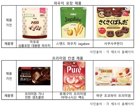 65세 이상이 있는 가구는 전체의 50.3%에 달하며, 일본 과자 시장은 기존의 ‘어린이 간식 시장’에서 ‘성인이 일상적으로 즐기는 시장’으로 변화되고 있다. 현재의 고령층은 감자칩이나 쿠키가 보급된 시기를 청년기에 경험했기 때문에, 전통적으로 와가시(일본식 과자)를 중심으로 했던 기존 고령자와는 섭취 습관이 다르다는 점도 시장 성장에 기여했다. 앞으로 성인의 취향에 맞춘 프리미엄 제품이나 건강 가치를 강조한 제품의 출시 확대가 기대된다.