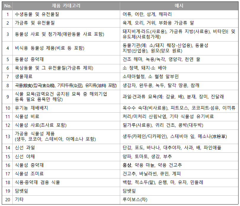 홍삼을 비롯해 중국이 공개한 ‘해외 추천등록이 필요한 농산물 목록’에 포함된 농산물의 경우, 2025년 12월 15일부터 중국 해관총서에 추천등록된 해외기업(등록번호 부여 기업)의 생산제품만 중국으로 수출 가능함.