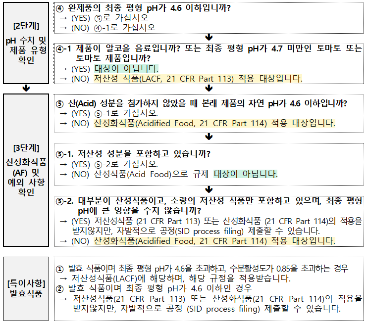 ☞ 제품이 저산성식품 해당하는지 여부는 아래(5번) 판별 흐름도를 참고하세요