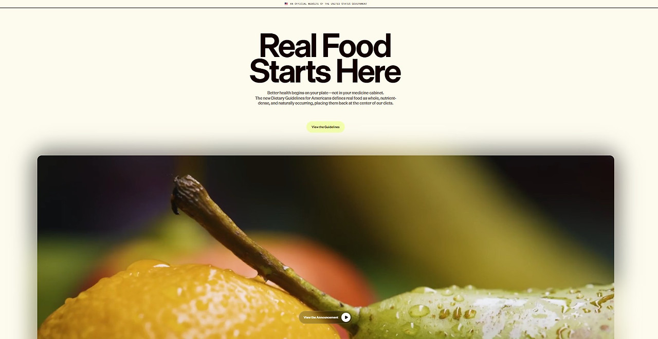 미 연방정부는 지난 1월 영양 및 건강 정보 웹사이트인 리얼푸드(RealFood.gov)를 개설하고, 개정된 식이 권장안을 발표했다. 곡류를 시작으로 채소와 과일, 유제품과 육류·달걀·생선, 기름·당분 순으로 구성되던 기존 식품 피라미드를 완전히 뒤집은 역피라미드 형태로 제시하면서, 미국 내에서도 큰 화제를 모았다. 새로운 식품 피라미드는 단백질과 건강한 지방, 채소와 과일의 비중을 식단 구성에서 가장 높이고, 통곡물의 비중은 가장 낮게 설정할 것을 권고하고 있다.