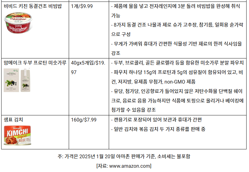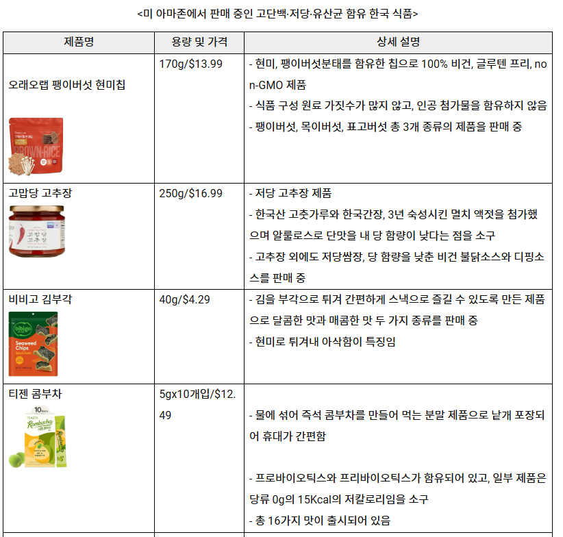 <미 아마존에서 판매 중인 고단백∙저당∙유산균 함유 한국 식품>