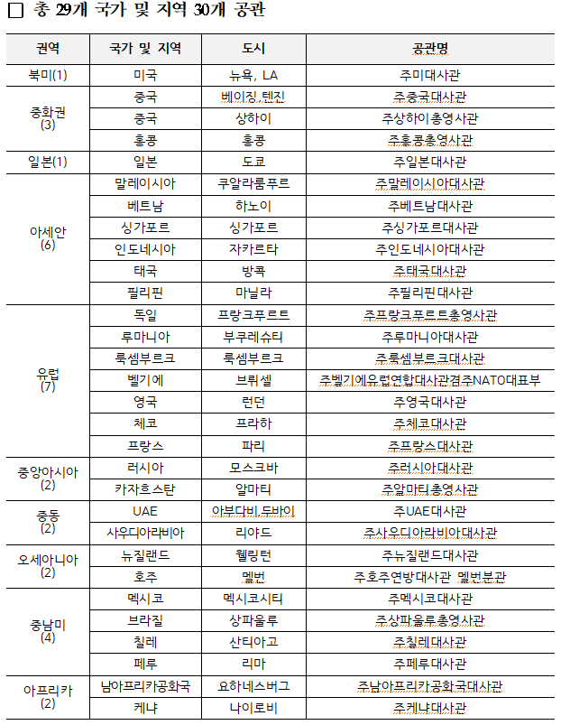 농림축산식품부(장관 송미령)와 외교부(장관 조현)는 K-푸드의 글로벌 진출 확대를 위해 2026년 K-푸드 수출 거점 재외공관(이하 K-푸드 거점공관) 30개소를 지정했다고 밝혔다.