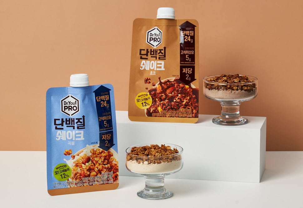 오리온은 단백질쉐이크에 식이섬유를 더한 ‘닥터유 프로(PRO) 단백질쉐이크’를 출시했습니다. 단백질 24g과 식이섬유 5g을 담고 당 함량은 2g으로 낮췄습니다. 단백질의 근육 생성 효과에 식이섬유의 포만감을 결합해 기능적 시너지를 노렸습니다.