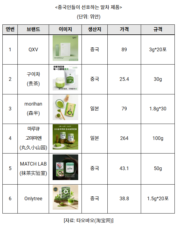 이로 인해 일본산 말차의 수급 불안과 가격 부담이 확대되면서, 중국 시장에서는 해당 수요 공백을 중국산 말차가 빠르게 대체하는 흐름이 나타나고 있다.