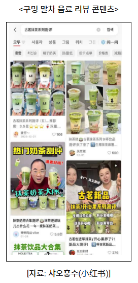 실제로 구밍(古茗)의 말차 음료 관련 콘텐츠는 샤오훙수에서 조회수 1,300만 회를 기록하며 높은 관심을 입증했다.